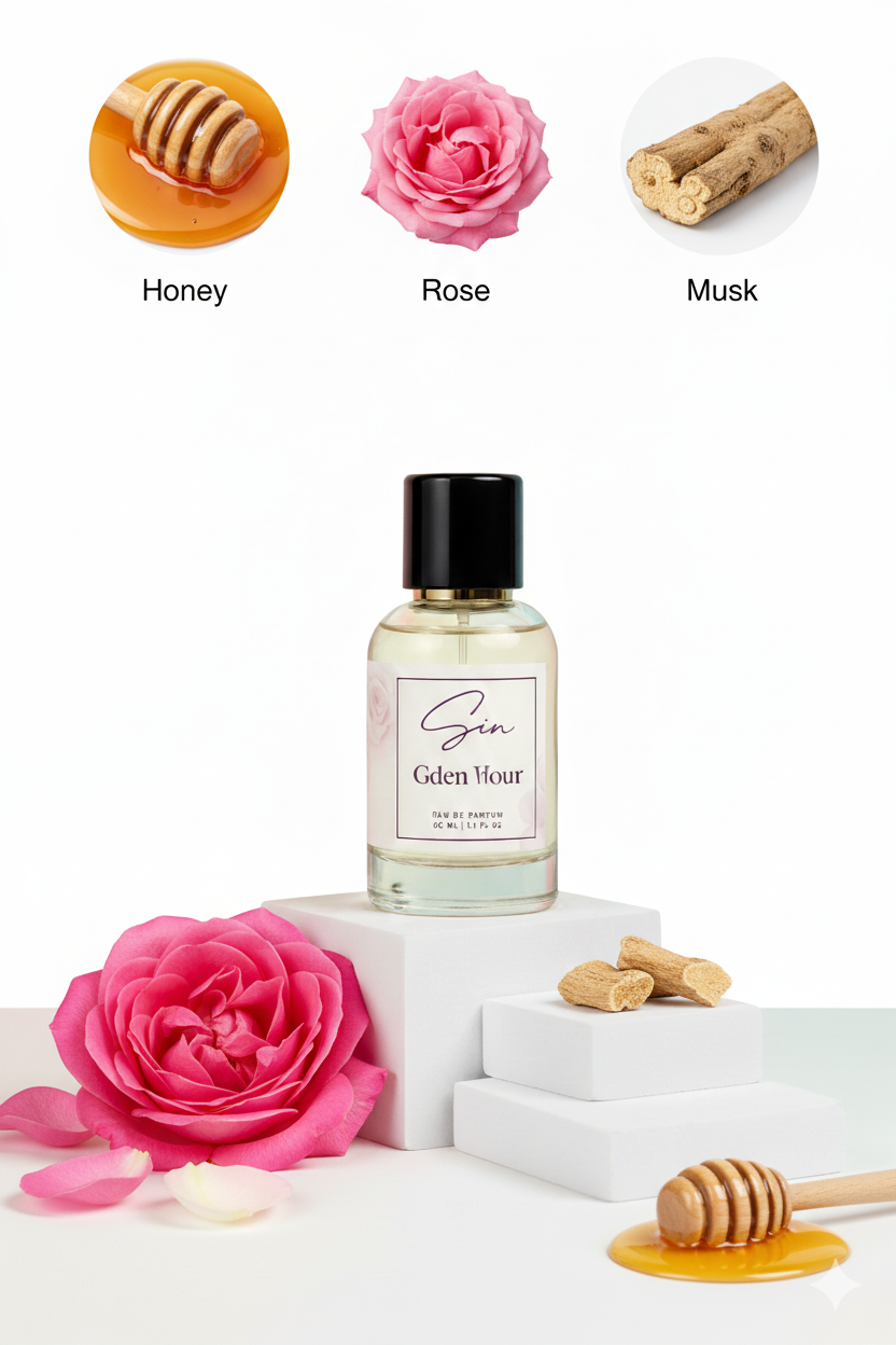 A warm, indulgent, unisex luxury perfume blending honey, rose, and oudh crafted to radiate confidence, comfort, and long-lasting sophistication.