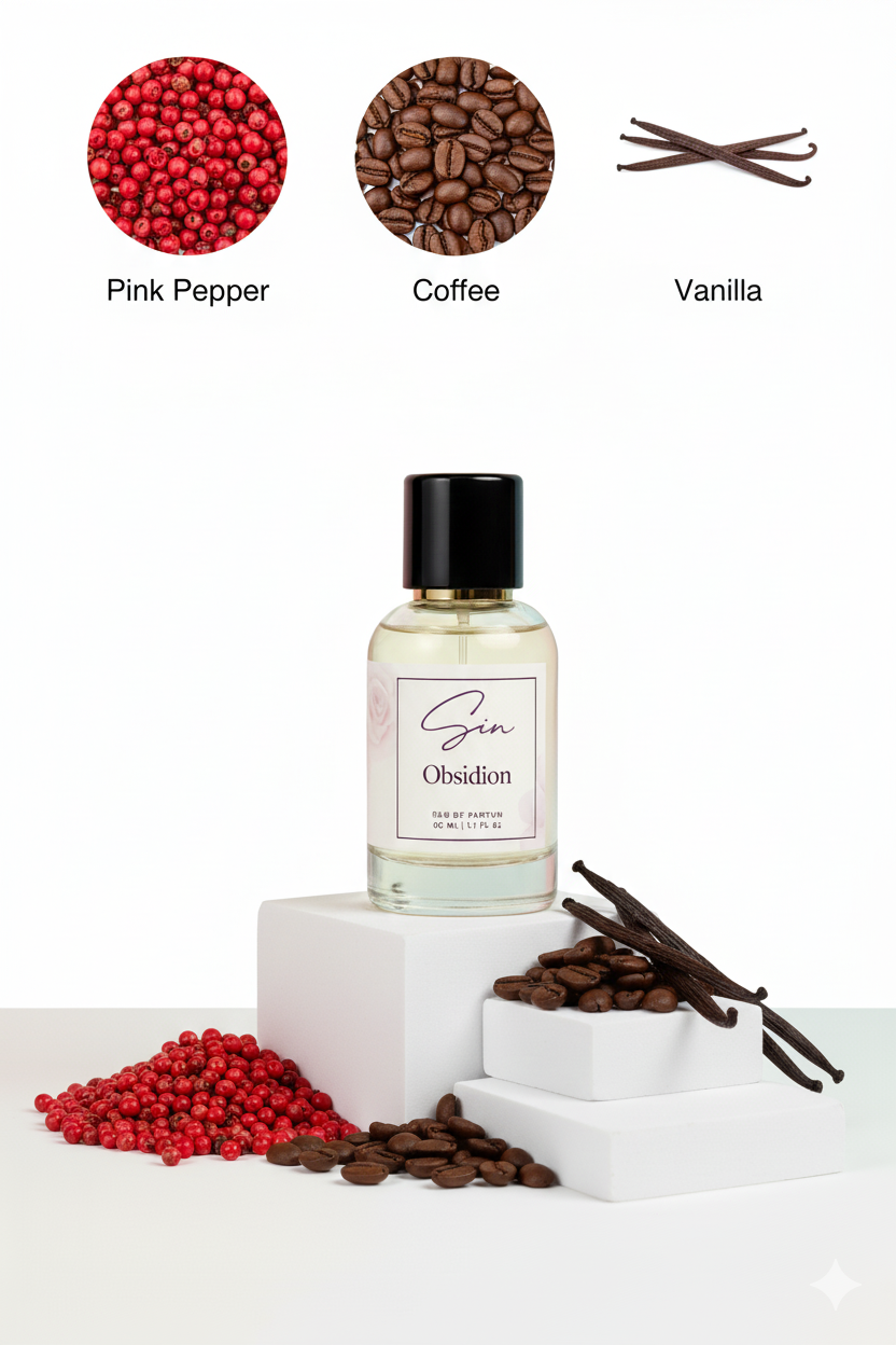 Born from the strength beneath stillness, Obsidian embodies SIN’s deeper side desire hidden inside composure. Notes of coffee, vanilla, and cedar ignite like slow-burn confidence, revealing warmth through control. It’s not power that shouts; it’s presence that stays.